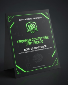 Totalmente online, com fotos do trabalho pronto publicadas no instagram @braziliangroomers , Instagram oficial @groomerfight e TikTok @groomerfight