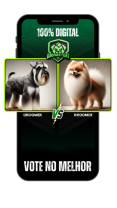 Em combates digitais 1×1, você enfrentará outros groomers com fotos reais do seu trabalho, avançando fase por fase até a grande final.